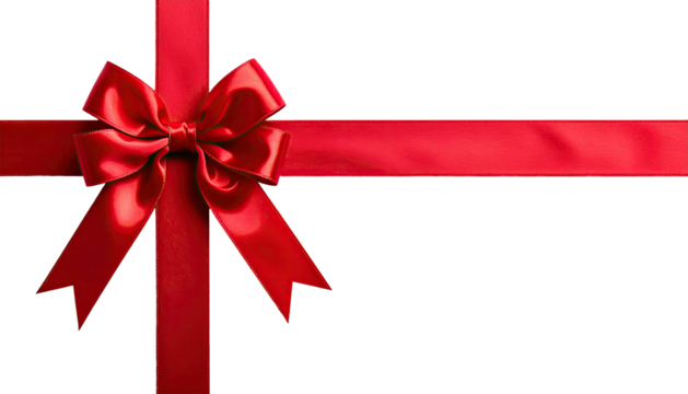 Elegant red satin ribbon bow tied in a cross shape on a black background for gift wrapping and celebrations