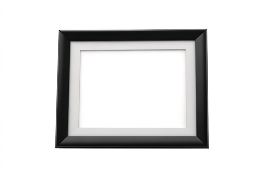 Black vertical picture frame mockup with mat and empty space, presenting artwork or design on transparent background