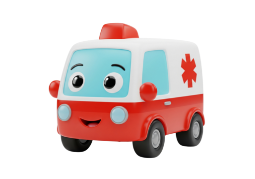 Playful Cartoon Ambulance Toy - Children's Emergency Vehicle Concept Isolated on White
