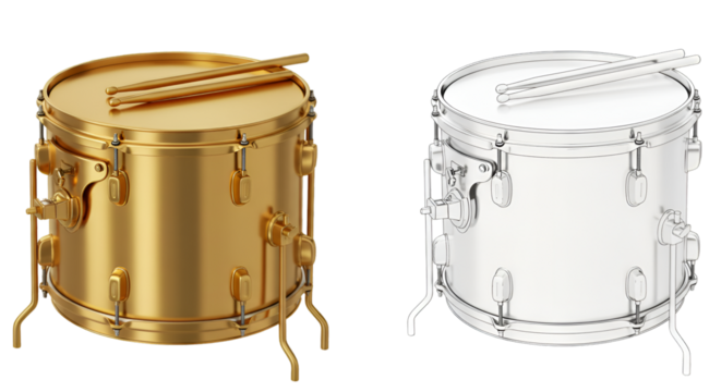 Illustration of Gold and White Drum Set Musical Instrument Isolated