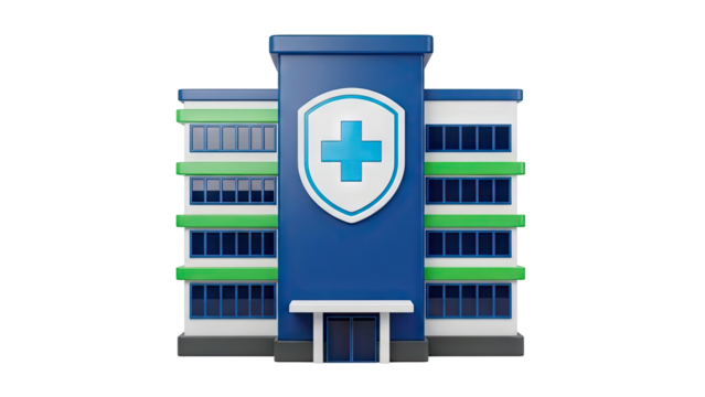 3D Rendered Red Hospital Building with Medical Cross Symbols