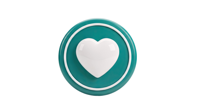 3D White Heart Icon with Teal Circle Frame on transparent background