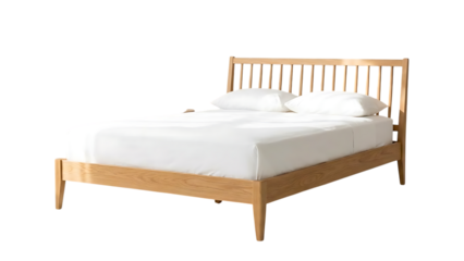 Modern Light Wood Spindle Bed with White Bedding Product Shot