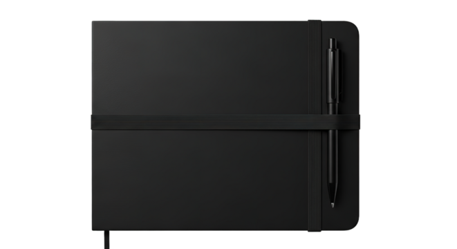 A simple blank spiral notebook with white pages isolated against a black background image view