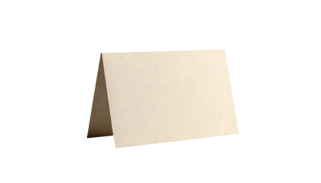Blank, cream-colored place card, folded in a simple tri-fold style