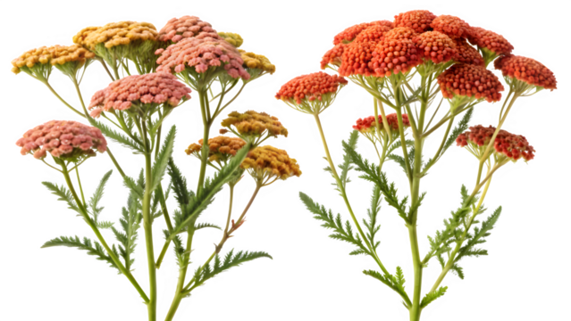 Frontal View of Achillea Terracotta and Actaea Simplex – Isolated PNG Cutout on Transparent Background
