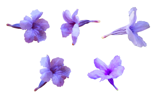 Purple ruellia flower isolated on a transparent background