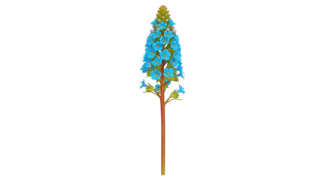 Isolated echium simplex flower, single stem with blue blossoms, plant on its own with no background