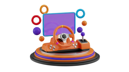 Man engaging with virtual reality wearing futuristic simulator on transparent background