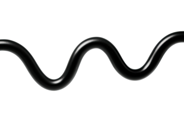 Glossy, dark, flexible cable in a curved, flowing, sine wave shape