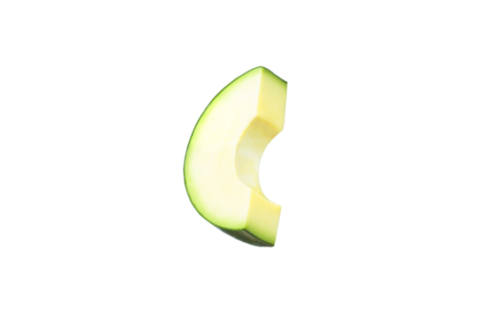 Fresh avocado slices isolated on white background. Ripe fresh green avocado Clipping Path. Full Depth of field. Focus stacking