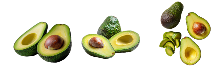 Fresh avocado halves  png  isolated on transparent background, vibrant green, showcasing healthy eating and delicious flavor for culinary designs