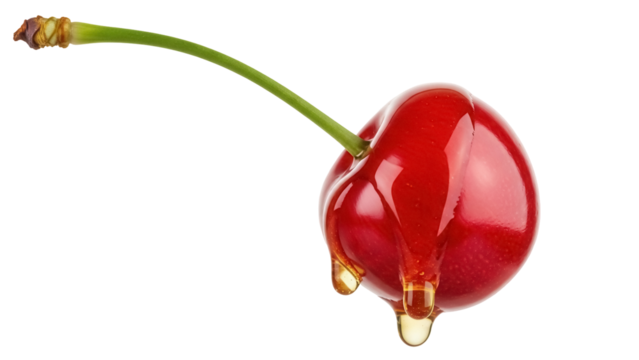 Sweet red cherry with honey dripping isolated PNG, delicious fruit with natural sugars on transparent background for healthy eating