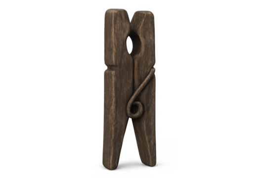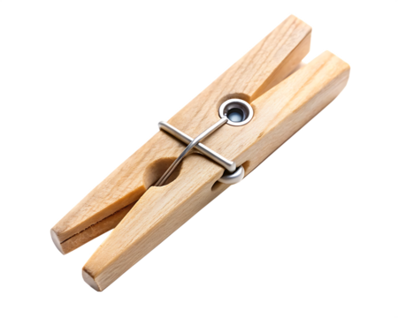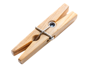 Classic wooden clothespin isolated on transparent background, ready for holding laundry or other items
