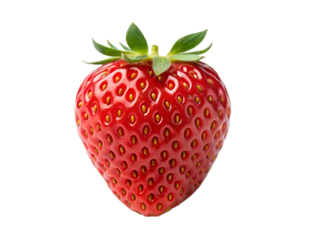 Strawberry isolated png. One strawberry on transparent background. PNG format. Red berry with no background. Full depth of field. Perfect retouched.