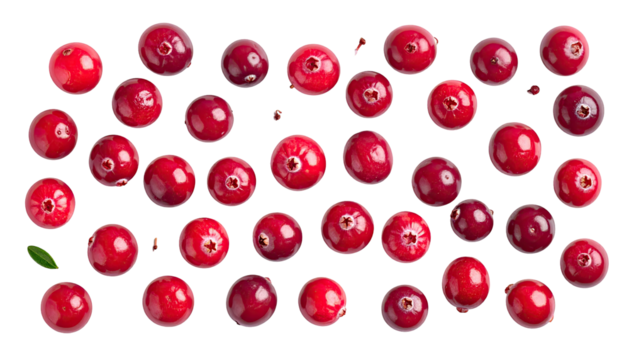 A single ripe red cranberry isolated on a white background.