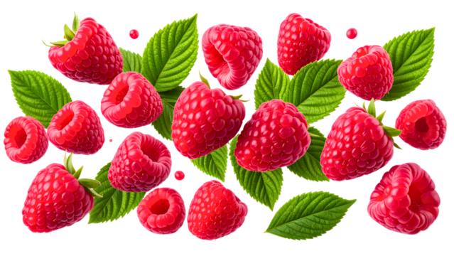 Fresh red strawberry isolated PNG, ripe fruit with green leaves on transparent background, healthy eating and summer harvest