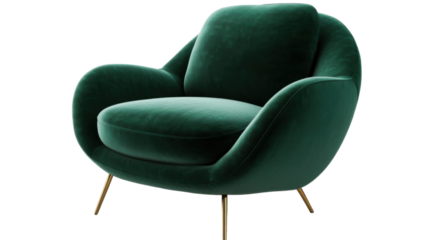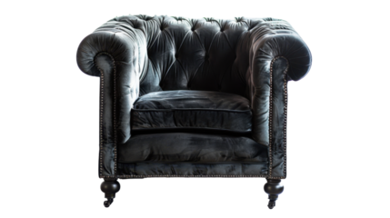 Comfortable dark velvet chesterfield armchair on transparent background