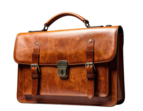 Brown leather strap with metal buckle isolated on transparent background
