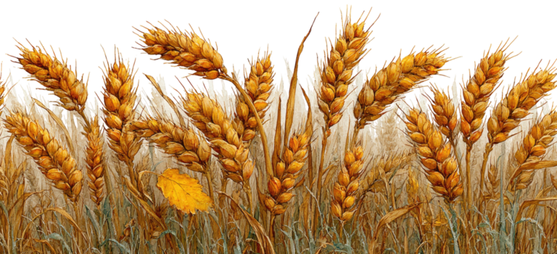 Golden Wheat Stalk Close Up Isolated on Transparent Background