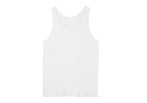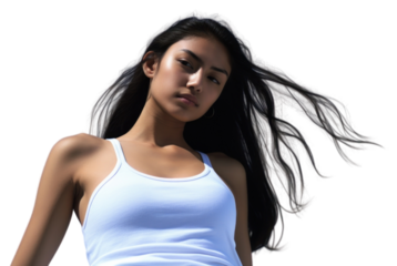 Woman wearing white tank top shirt. blank tank top shirt for design mock up isolated on transparent background.