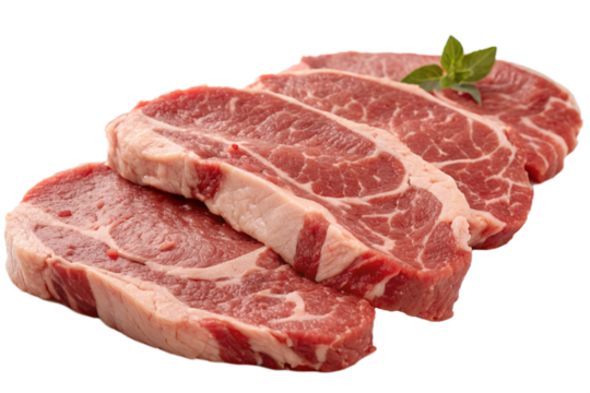 Fresh raw beef slices isolated on transparent background premium cuts for grilling, roasting, and searing, delivering exceptional flavor and tenderness in every bite