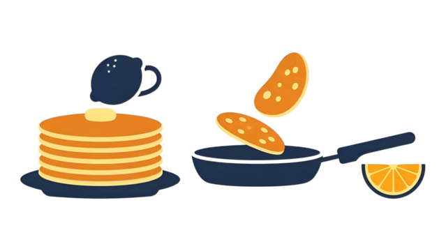 Delicious pancakes with syrup and orange slices, isolated on transparent background