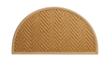 Semi-circle sisal mat for placing against a wall in a studio apartment, offering a compact and space-efficient design.