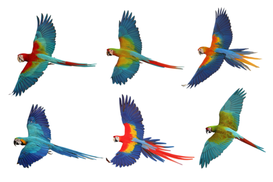 Collection of six colorful autumn maple leaves isolated on transparent background