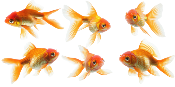 Six vibrant goldfish isolated on a modern abstract background showcasing aquatic beauty and grace in a colorful aquarium scene