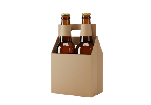 Isolated brown beer bottles in a cardboard carrier, ready for a picnic or party treat