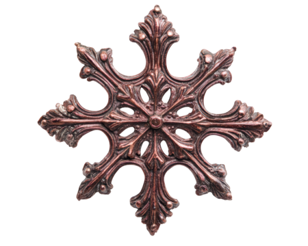 Intricate six pointed snowflake design made of wood, showcasing fine details and craftsmanship. Perfect for decorative purposes or as unique art piece