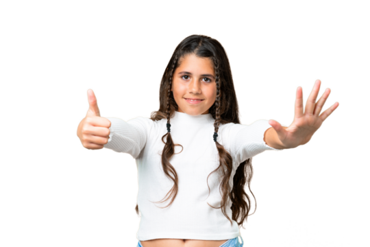 Young girl over isolated chroma key background counting six with fingers