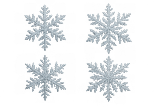 Sparkling white snowflakes forming christmas and holiday winter decoration on transparent background