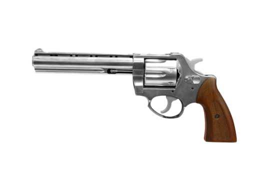 Chrome revolver with wood grip isolated on transparent background
