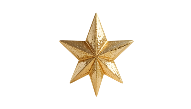 Shiny golden sixpointed star ornament with textured surface on a solid for holidays