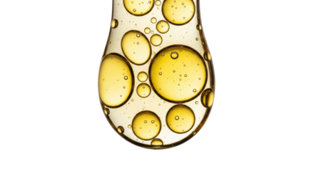 golden oil droplets of various sizes, floating on white background, skincare serum or vitamin oil concept, macro photography, minimal composition, clean bright lighting