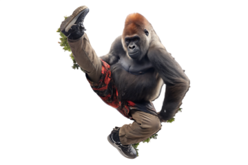 groovy gorilla doing a breakdance in the forest isolated on white background PNG, AI GENERATED