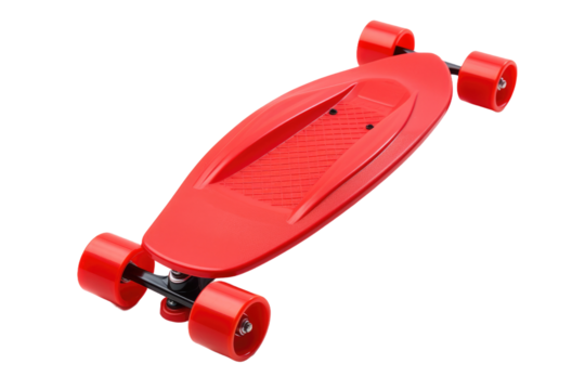 Red Skateboard on White Background. On a White or Clear Surface PNG Transparent Background..