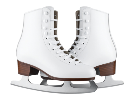 White figure skates with sharpened blades for ice skating, winter sport, recreation, and competition with transparent background