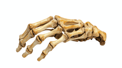 Model of human skeletal hand with phalanges detailed, isolated on white background