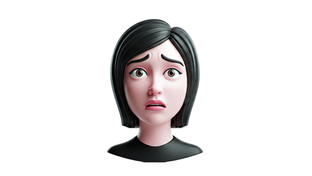 Worried 3D Woman Character with Short Black Hair