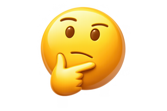 Thinking face emoji with hand on chin illustrating thought, reflection, skepticism, questioning, or confusion on transparent background