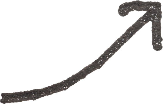 Arrow sign drawn with black crayon pencil isolated on transparent background