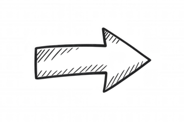 Hand-drawn sketchy arrow pointing right, indicating direction, success, decision, or next step, transparent background