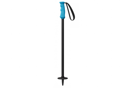 Realistic ski pole with blue handle and black shaft, isolated on transparent background, ideal for winter sports and recreation visuals
