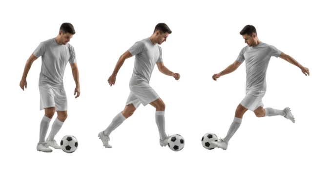 Full Body Boxer Practicing Punch Combination in Side View Against White Background