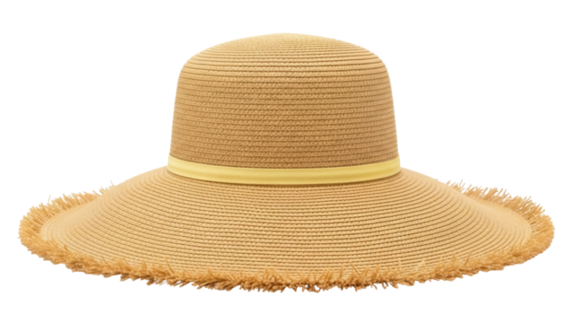 Elegant straw sun hat isolated PNG on transparent background, stylish summer headwear for beach vacation and sun protection
