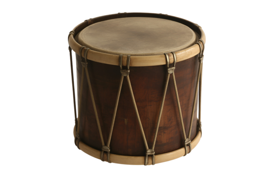 Traditional wooden drum with natural skin head isolated on transparent background
