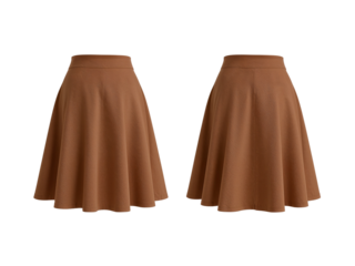 Two elegant tan midi skirts displayed against an isolated transparent area, showcasing fashion and